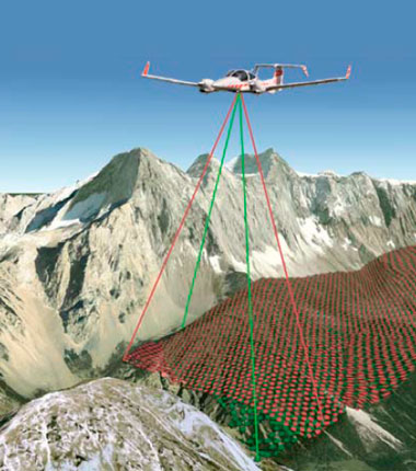 Este moderno Sistema instalado en un avión o helicóptero, efectúa un proceso de barrido laser sobre la superficie terrestre a lo largo de líneas de vuelo, de esta forma se generan franjas de información continua que cubren la superficie de interés, con valores de alta precisión tanto en el plano horizontal como en altura. De gran empleo en zonas de vegetación densa, el Sistema permite obtener la topografía precisa de la superficie terrestre (DTM) mediante la eliminación digital de la vegetación.